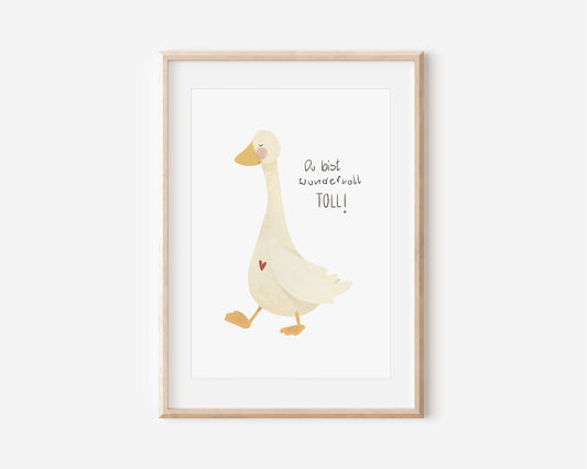 Kinderposter „Gans wundervoll“ A4 A3 – lustiger Spruch & Illustration für Kinderzimmer