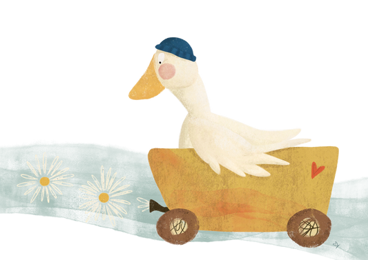 Poster "Gänseblümchen" A4 & A3 Kinderposter Gans im Wagen