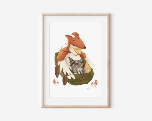 Poster "Fuchsgans macht Waldrallye" A4 & A3 Kinderposter Gans Waschbär Fuchs