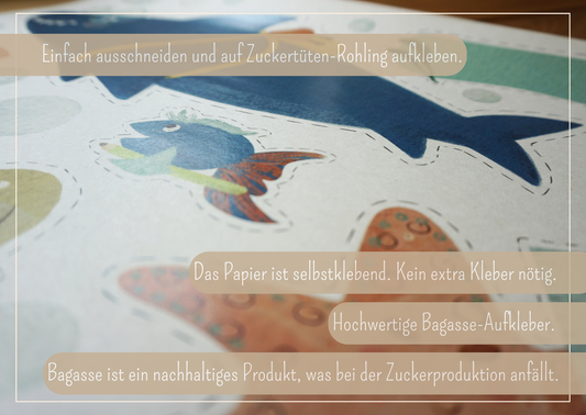 Schultüte DIY Meerestiere Aufkleber | DIY Zuckertüte selbst basteln, Sticker Schultüte personalisierbar und Caketopper Einschulung Meereswelt