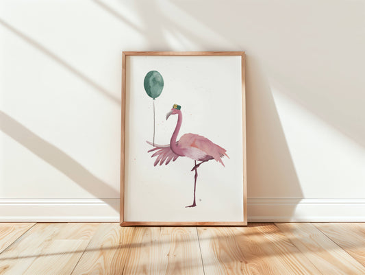 Poster Flamingo Joni mit Luftballon A4 & A3