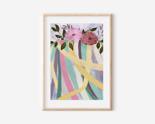 Poster Maibaum mit bunten Bändern A4 & A3