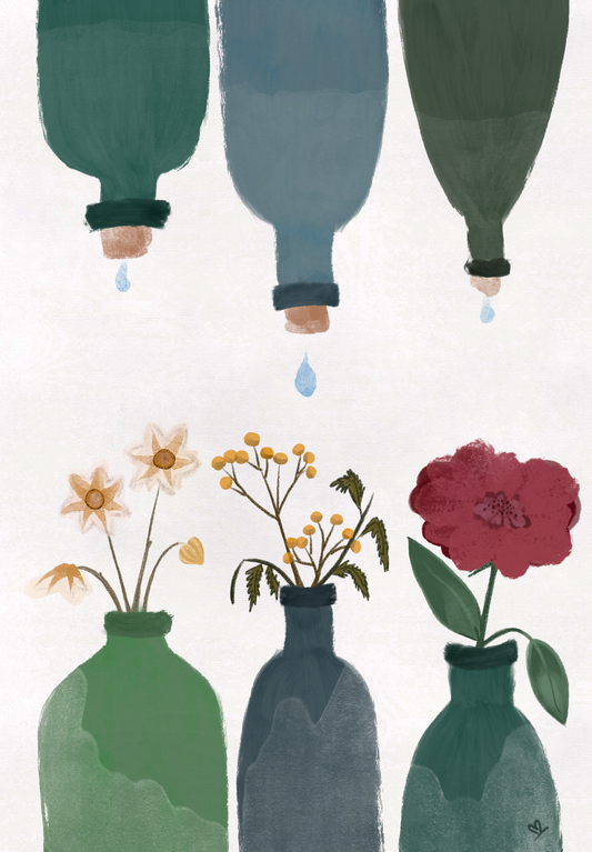 Postkarte Flaschenblumen A6 | Karte Blumen