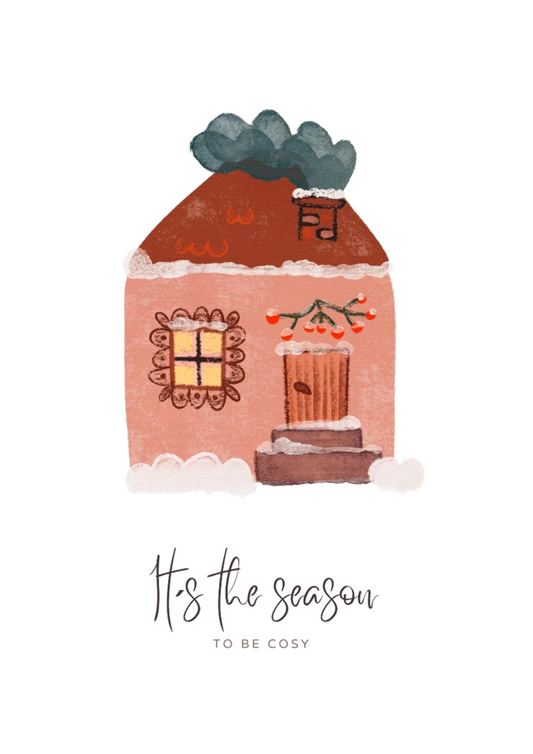 Postkarte Cosy Haus A6 | Karte Weihnachten Grußkarte Winterhaus im skandinavischen Stil