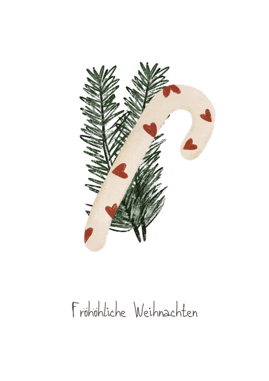 Weihnachtskarte Zuckerstange A6 | Postkarte Weihnachten Herzen