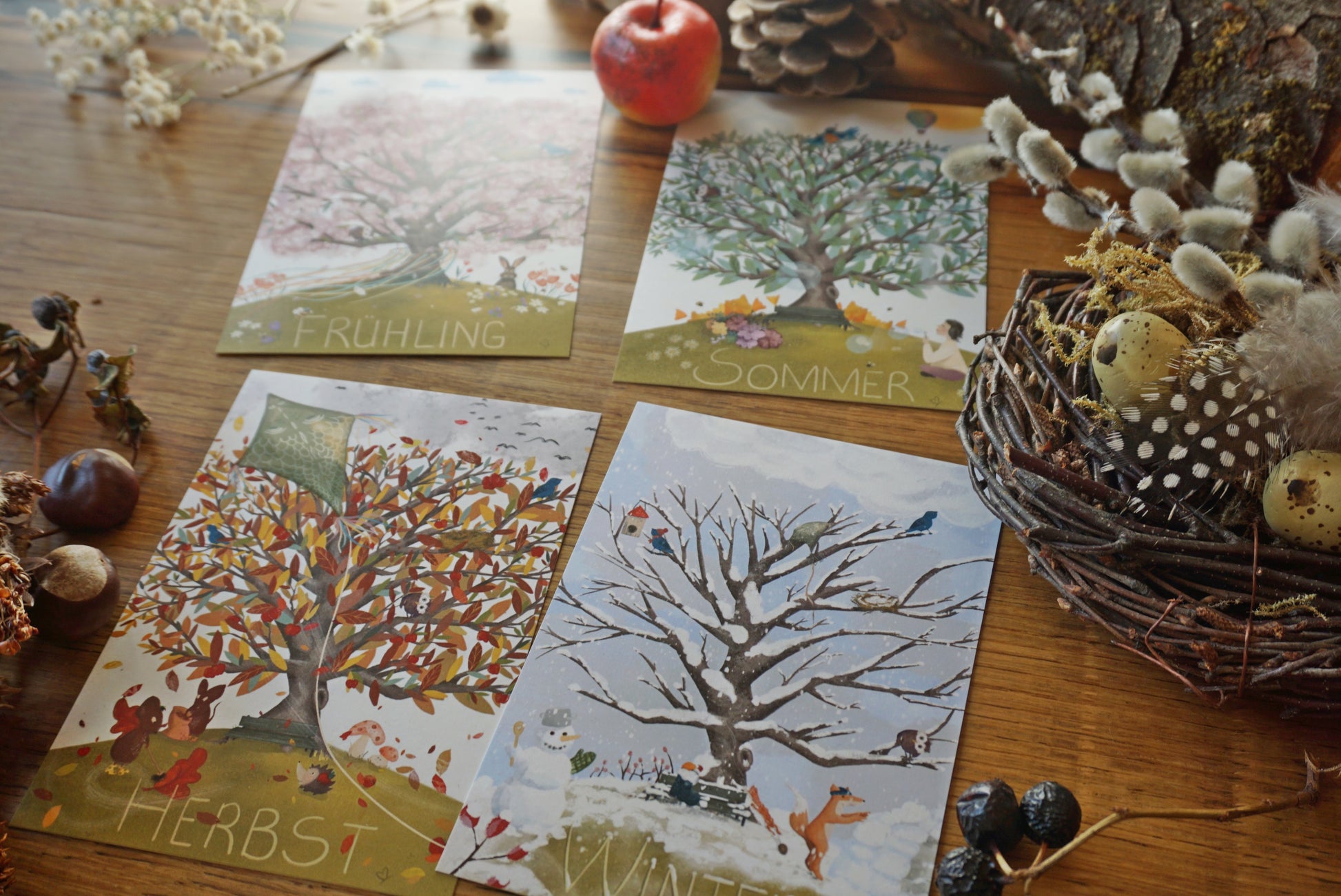 Vier Jahreszeiten Lernkarten Set nach Montessori | Postkarten Set A6